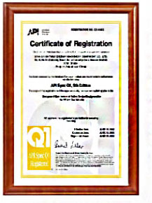正道能源公司具備的企業(yè)資質(zhì)有:API質(zhì)量管理體系認(rèn)證, ISO質(zhì)量管理體系認(rèn)證,環(huán)境管理體系認(rèn)證,職業(yè)健康管理體系認(rèn)證,歐盟CE產(chǎn)品標(biāo)準(zhǔn)等